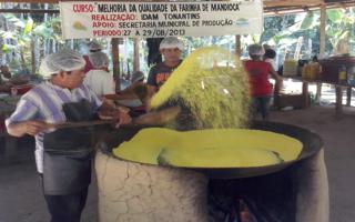 Considerando que o cultivo da mandioca para fabricação de farinha é a principal atividade econômica desenvolvida pelas famílias rurais do município de Tonantins (a 867 km de Manaus), o Instituto de Desenvolvimento Agropecuário e Florestal Sustentável do Amazonas – IDAM, realizou no período de 27 a 29 de agosto, um curso de boas práticas para fabricação da farinha de mandioca.